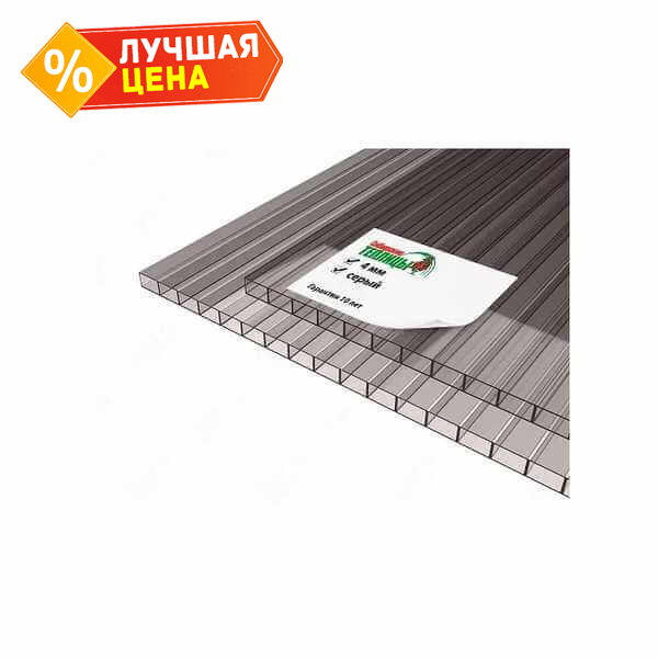 Сотовый поликарбонат 4 мм СИБИРСКИЕ ТЕПЛИЦЫ серый 2100х6000 мм